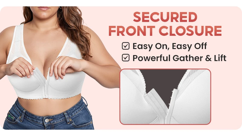 The front hook design makes this bra a breeze to wear! No more struggling to fasten it behind my back. It fits perfectly, lifts beautifully, and is so comfortable. I’m very impressed with this product!